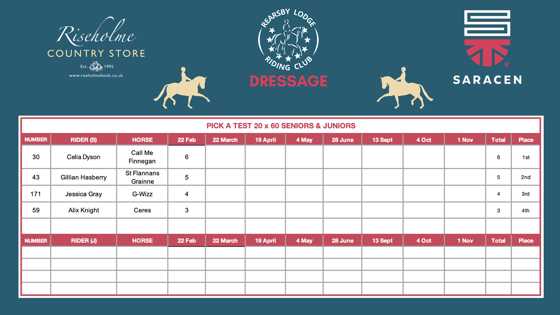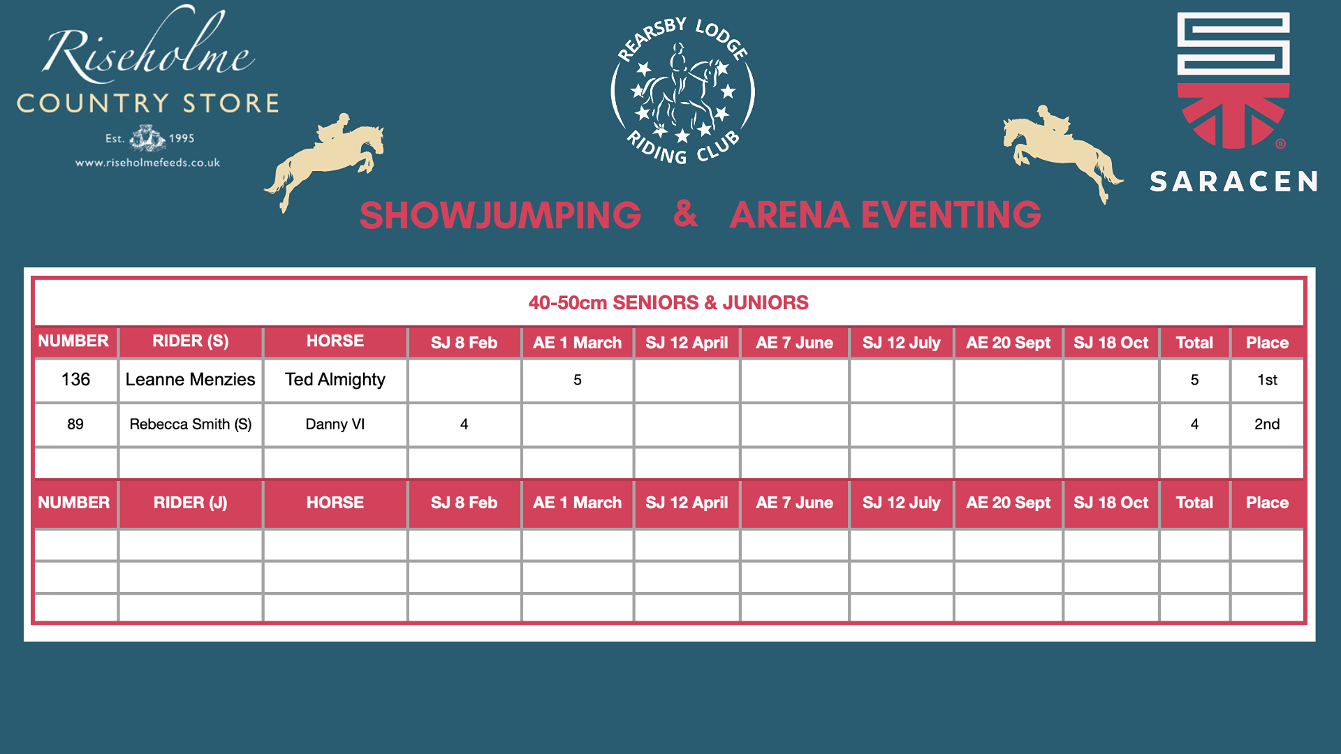 PLEASE NOTE - When classes are not split on the day, in order to ensure our Junior members are treated fairly, all placed Juniors will receive separate League Table points as if the class had been split. Senior places will stay as they are and rosettes and placings on the day will be allocated for the whole class as one section.