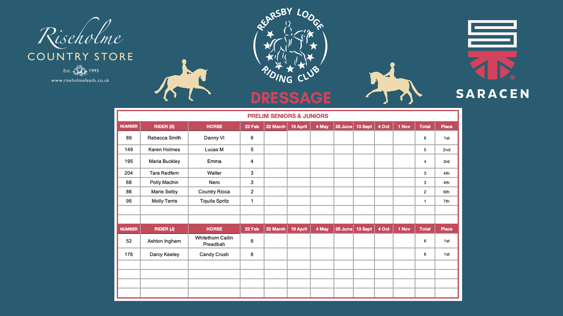 2025 League Table Winners - Sponsored By Riseholme Country Store.