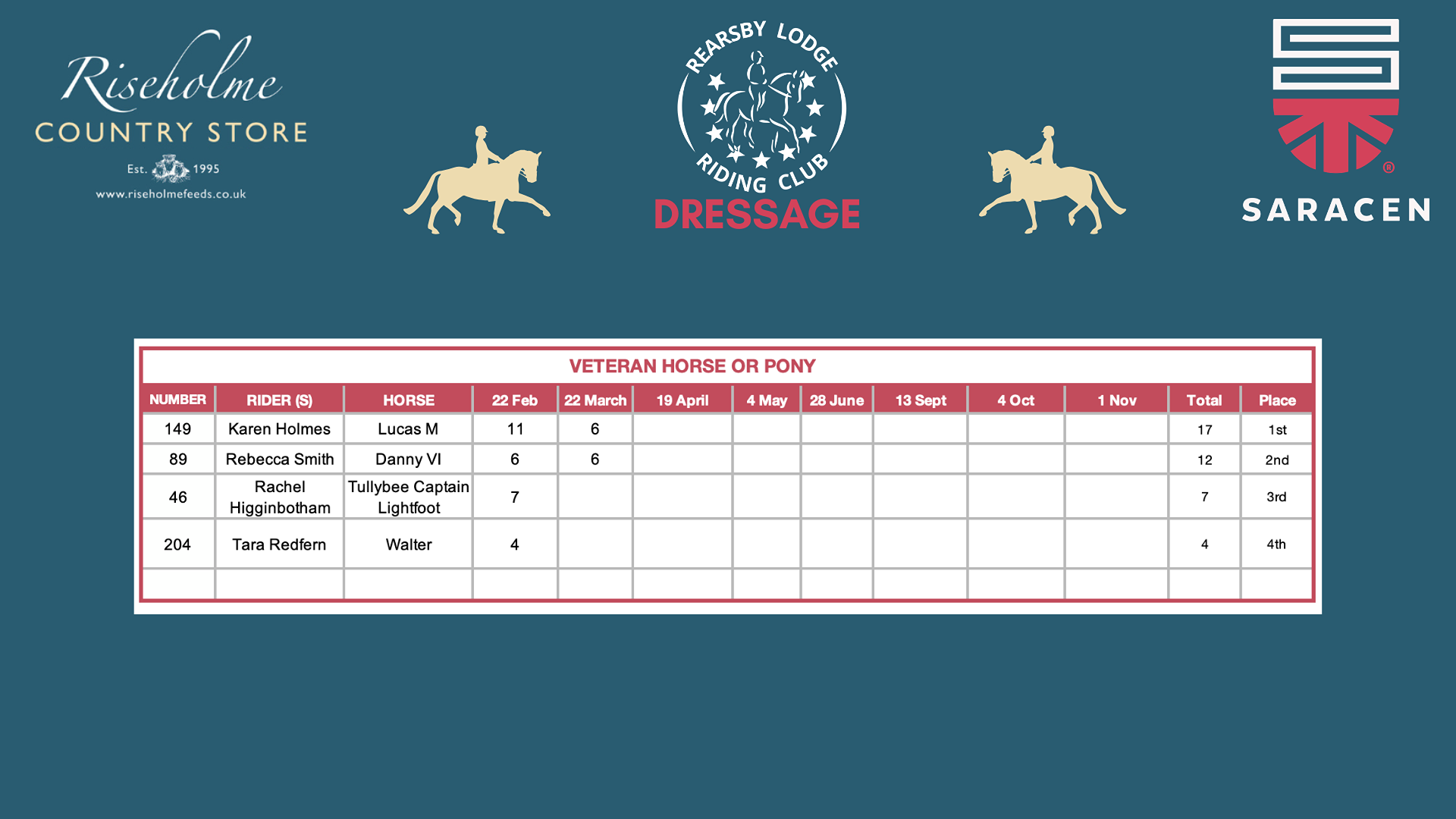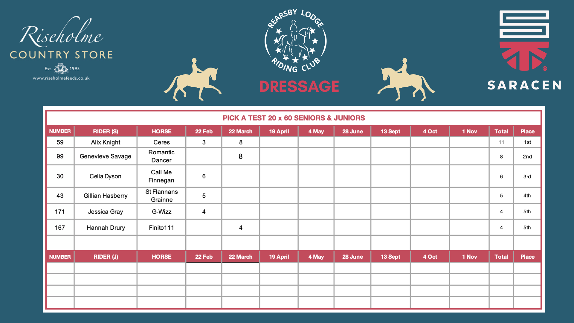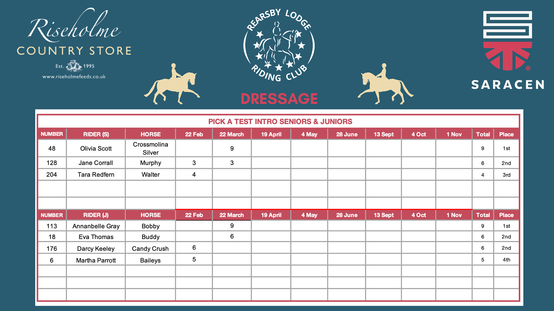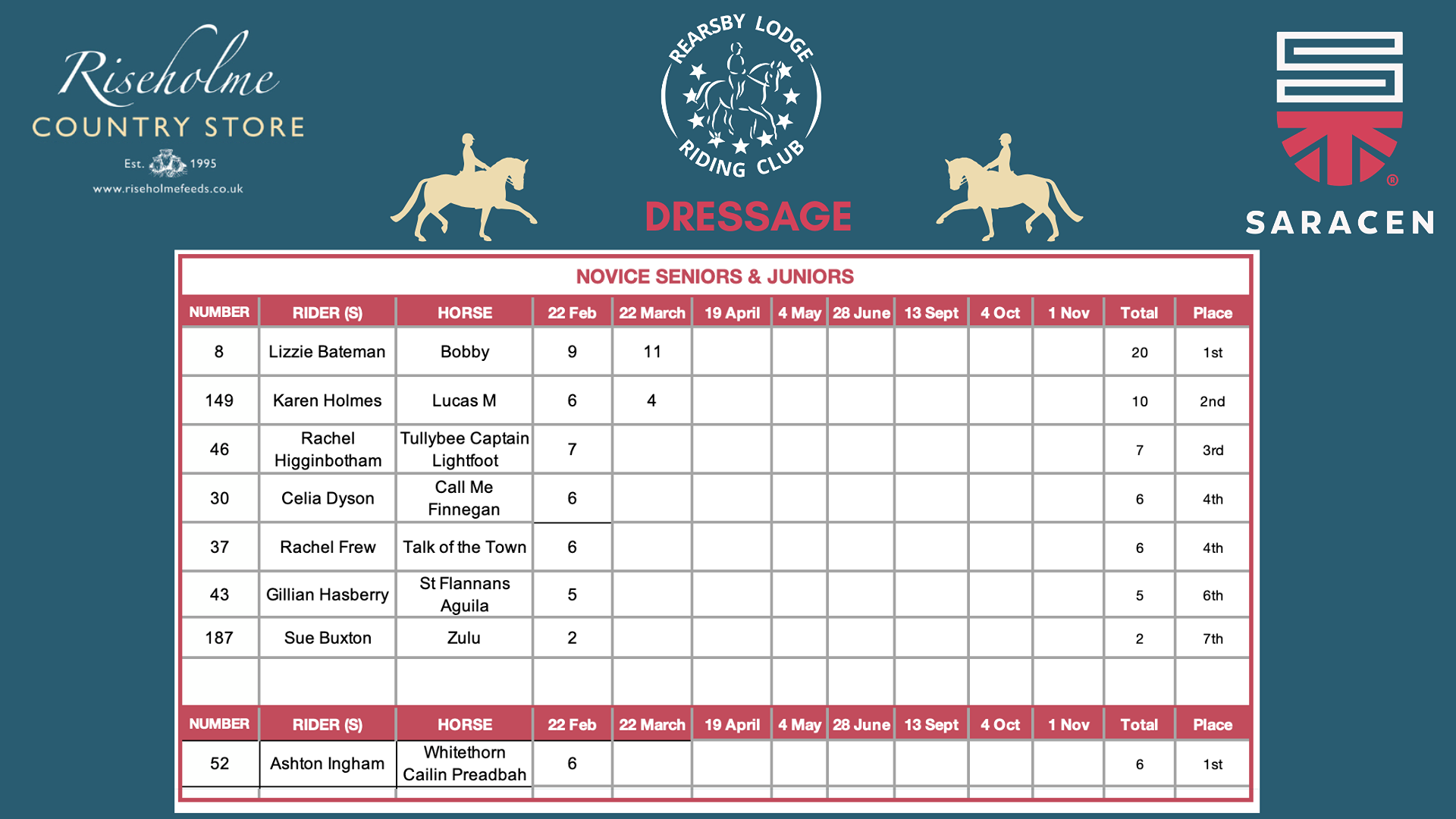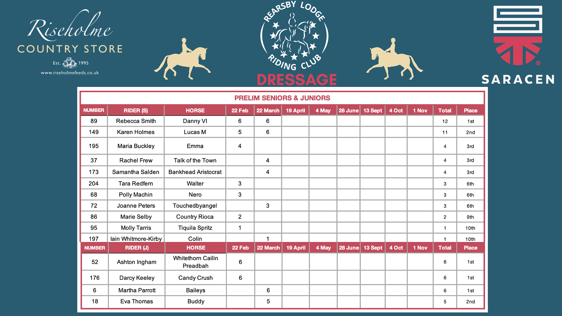 2026 LEAGUE TABLES SPONSORED BY RISEHOLME COUNTRY STORE & SARACEN HORSE FEEDS...