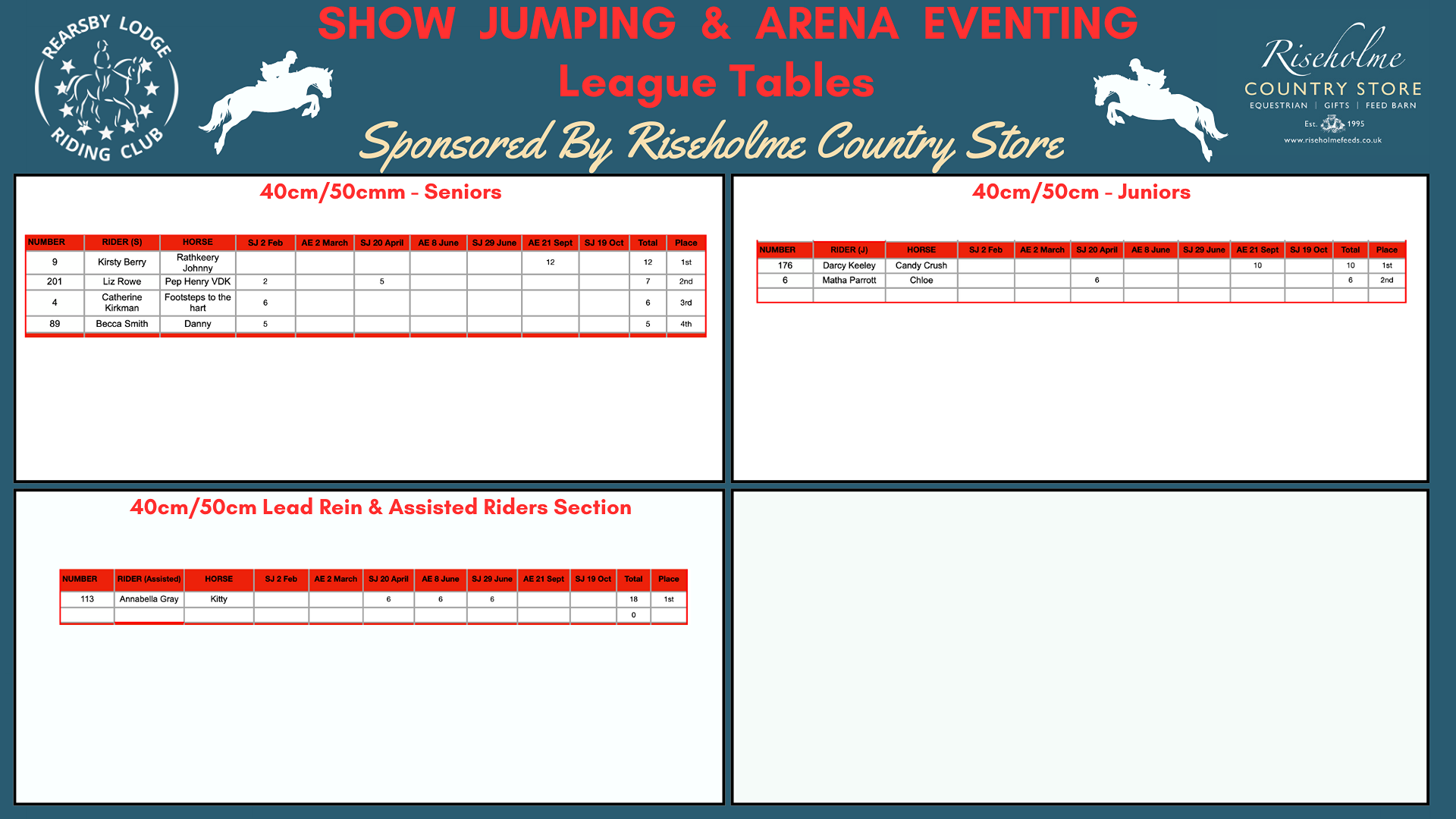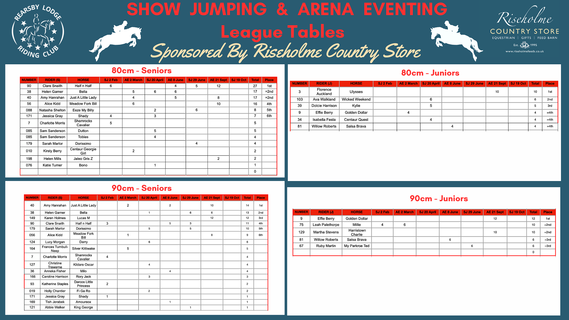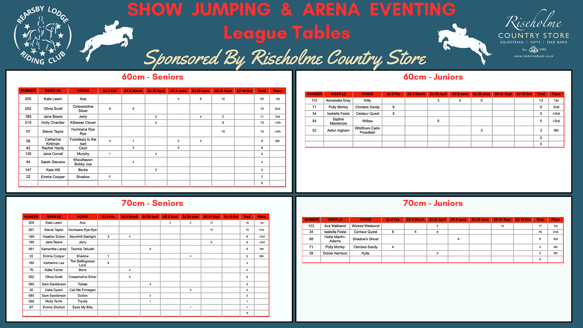 PLEASE NOTE - When classes do not have enough junior and senior competitors and are therefore not split into junior and senior sections, points for the Members' Leagues will be allocated separately to both juniors and seniors, but rosettes and placings on the day will be allocated for the whole class as one section.
